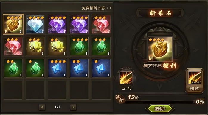 宝石的属性会根据镶嵌的装备类型自动适配,比如攻击类装备镶嵌后增加攻击力,防御类装备则提升防御属性。初期可以先用低级宝石填满孔位,等攒够资源再逐步替换高级宝石。宝石最高可升到15级,之后还能打磨成晶石,获得额外技能效果,比如暴击、斩杀等强力属性。精炼宝石时要注意组合策略,比如优先升级攻击类宝石,因为输出提升对推图和PK的帮助更直接。