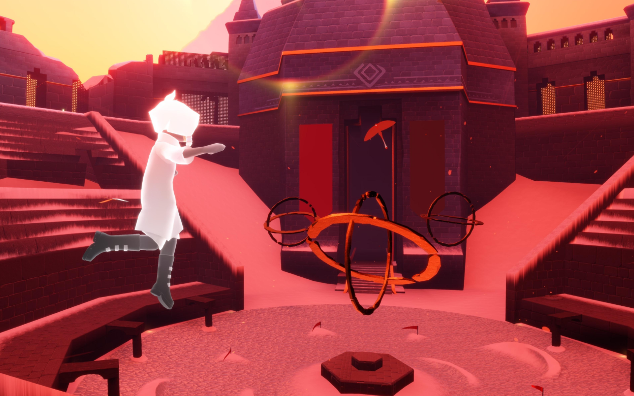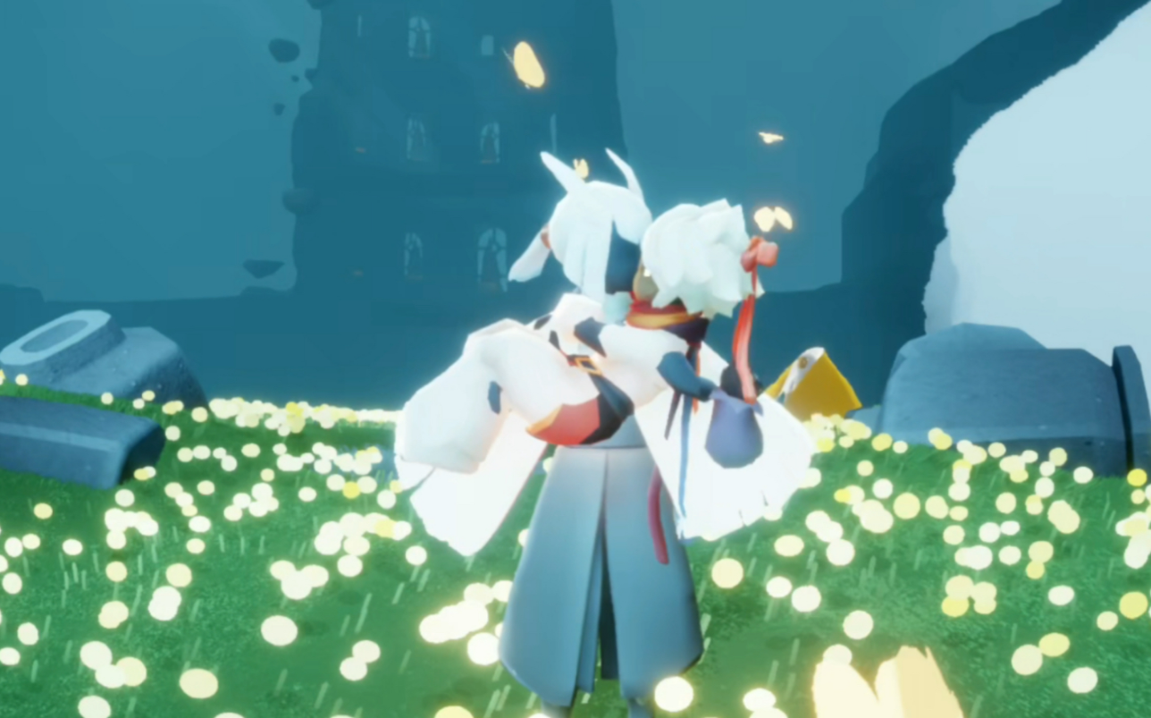 解锁抱胸站姿,首先需要找到霞谷的自豪冠军先祖。这位先祖位于霞谷赛道的终点区域,具体位置在神庙左侧观众席的最高一排平台上。进入霞谷后选择任意赛道滑行到底,到达终点后往左侧高台飞就能看到先祖。