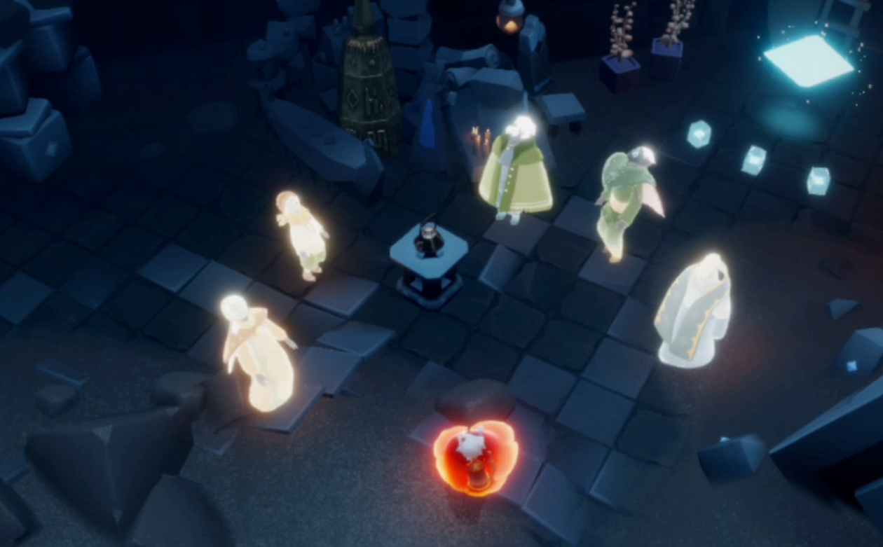 找到先祖后需要点燃并回忆收集过程。靠近先祖点击互动按钮开始追忆,跟随蓝色光芒完成整个收集流程。注意收集过程中可能需要飞行或滑行,建议提前储备足够的能量。完成追忆后返回遇境,在先祖树上用蜡烛解锁抱胸站姿动作。