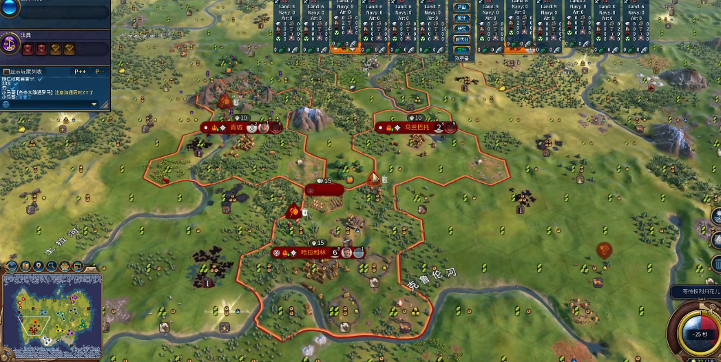 游戏右下角的小地图也提供了军事单位的可视化查看方式。点击小地图旁边的军事标签,地图会过滤显示所有军事单位图标。不同类型的单位会以不同颜色和形状区分,陆军为绿色盾牌,海军为蓝色船锚,空军为白色飞机。将鼠标悬停在图标上会显示该单位的详细信息,包括名称、等级、生命值和当前位置坐标。这种查看方式适合快速掌握全局兵力分布。