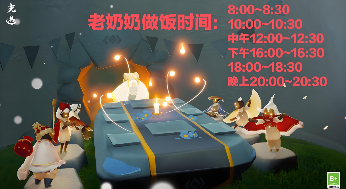 老奶奶的出现时间遵循固定规律,每日偶数小时的35分至45分(如8:35-8:45、10:35-10:45等)为其活动时段,每次持续10分钟。非活动时间内树洞仅作为普通场景存在,无法获取烛火。若需挂机收集烛火,建议携带火盆道具以自动烧毁食物,提升效率。隐藏图内可能存在其他玩家共同等待,可借助多人互动加速烛火生成。