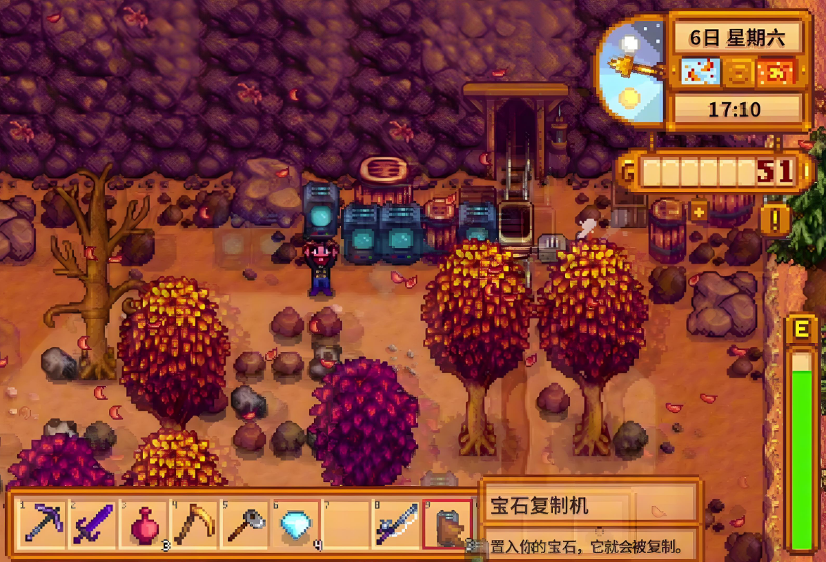 宝石复制机是游戏中高效利用宝石的关键设备。完成社区中心的Vault收集或达到挖矿等级9后可解锁配方,其材料包括石头、金锭、铱锭和电池组。复制机可复制翡翠、红宝石等高价值宝石,用于兑换楼梯或制作增益食物。需复制时间与宝石价值成正比,钻石需数天而石英仅需几小时。后期玩家可通过大量复制机形成自动化生产线,但需投入大量资源。