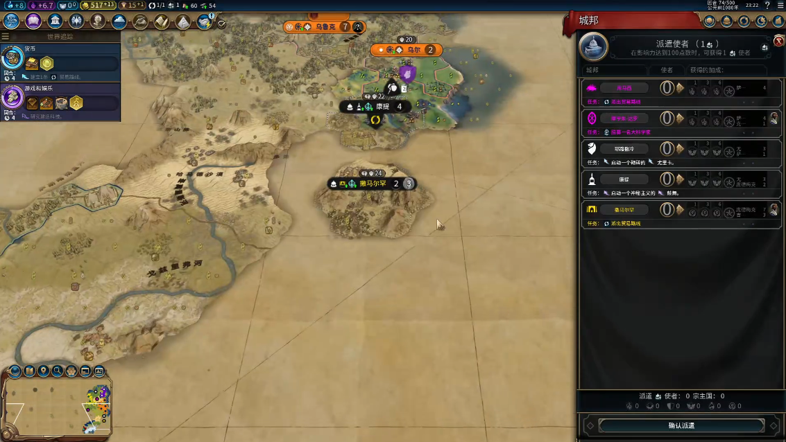铺城是快速发展的关键,但别盲目扩张。分城最好离首都6格左右,既能相互支援,又能共享工业区和娱乐区加成。早期用建造者砍树秒移民,快速铺开城市数量,但记得留一些树后期改伐木场。奢侈品和战略资源要优先圈占,多余的奢侈品可以和其他文明交易换金币或外交支持。遇到蛮族营地尽早清理,避免拖慢发展节奏。