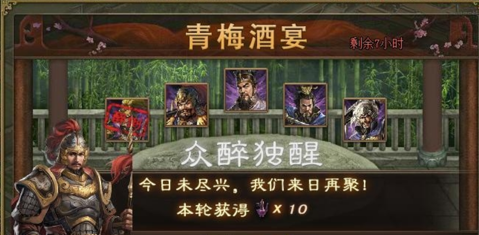 青梅酒宴是游戏内一项重要的觉醒活动,参与条件为玩家等级需达到120级以上且拥有可觉醒的武将。活动期间,玩家通过与武将对饮提升其醉意值,当醉意值满100时可获得10瓶觉醒酒奖励。每轮活动包含5位武将,全部醉倒后将触发众醉独醒额外奖励30瓶酒。活动提供3次免费参与机会,之后需消耗金币继续,初始价格为5金/轮并逐步递增。