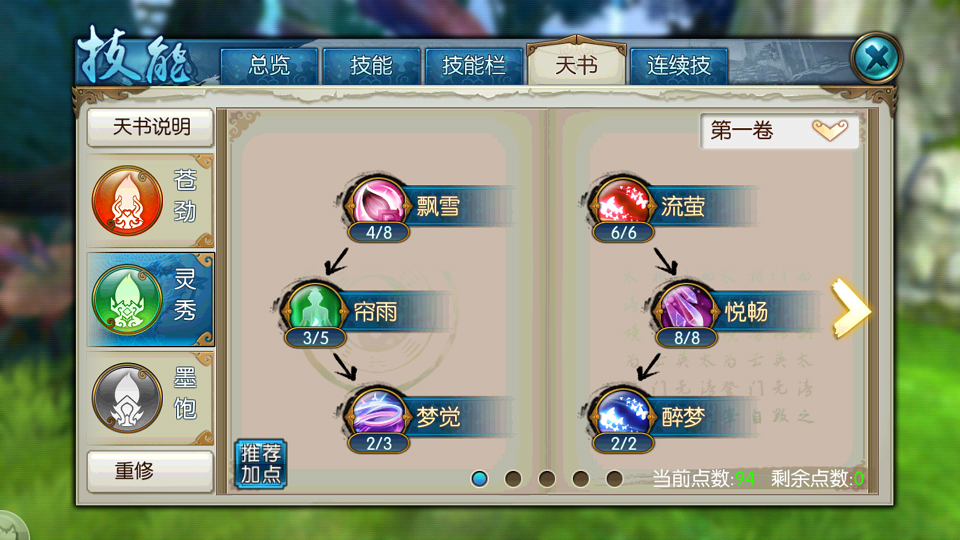 天书加点以苍劲、灵秀、墨饱三系为主,优先选择提升暴击和气血的被动属性。悦畅天书每点额外提供181暴击,22级累计增加3982点暴击值;玄默天书则每级提升3755气血上限,满级可增加82610点生存能力。这类属性加成对输出流灵契至关重要,尤其在PVP中能平衡攻防需求。需注意天书前置技能的过渡性投入,避免浪费关键技能点在不必要的分支上。