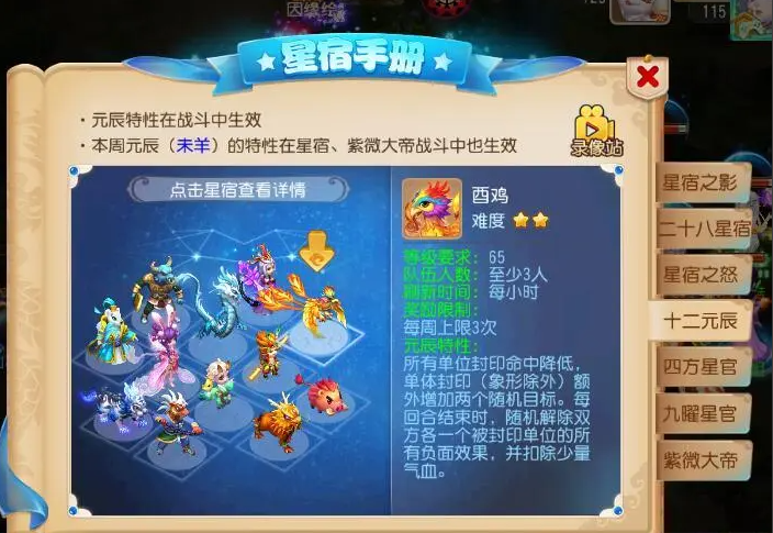 新增的双生星官机制,主怪每回合轮转并召唤星使。推荐五门阵容,集火顺序为星使→水火不侵单位→无量神君→主怪。混沌星使(高速封系)必须优先击杀,满层星魂的土星使会释放罗汉,火星使触发霜火千里秒全体。战斗前需备足九转回魂丹和高级魔法药,特技必备罗汉金钟、晶清诀。普通玩家若属性不足(如69法系无符3000血、1200防),可专注击杀亥猪、申猴等简单元辰积累资源。