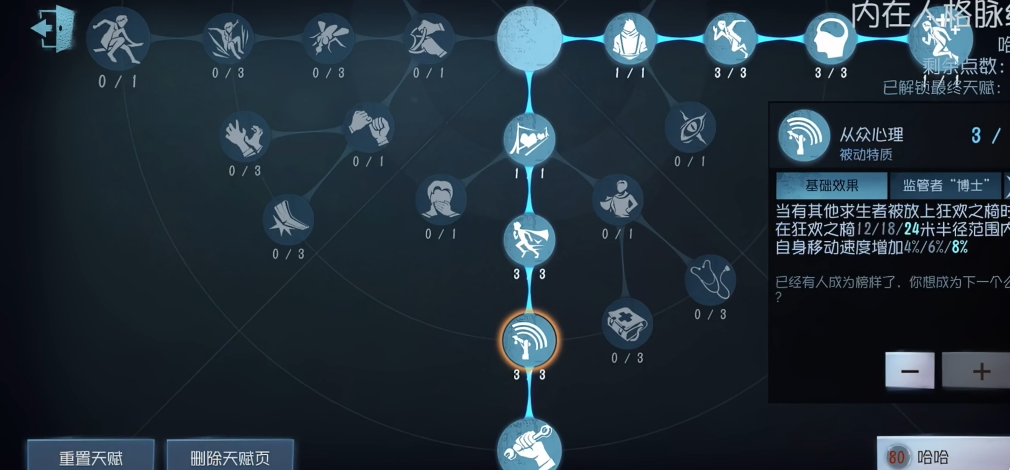 监管者侧重压制节奏,求生者讲究团队互补,偶尔反套路加点反而能打出奇效。别忘了游戏里还能随时重置天赋,多尝试不同组合才能发现惊喜。最近看到有人用全移速加点的蜘蛛打出恐怖控场,证明灵活变通才是高端局的精髓呢。