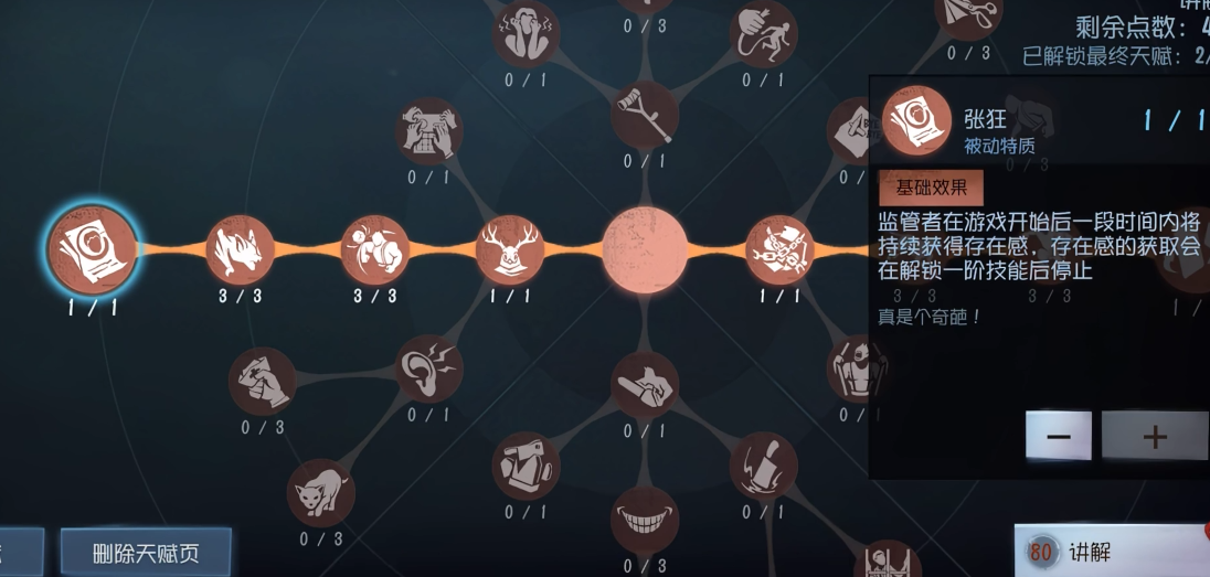 不管是监管者还是求生者,合理分配天赋点都能让你如虎添翼。咱们先说说监管者,像红蝶、小丑这些追击型角色,建议优先点出挽留和张狂,这样前期抓人节奏更快;而守椅强的角色比如黄衣之主,则可以侧重通缉和愤怒增强控场能力。记住别贪心把所有天赋都点满,专注核心技能才能发挥最大效果哦。