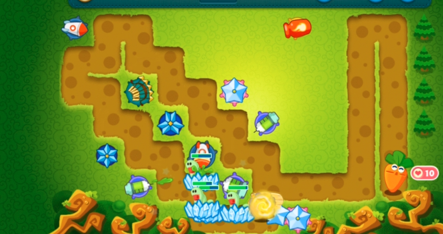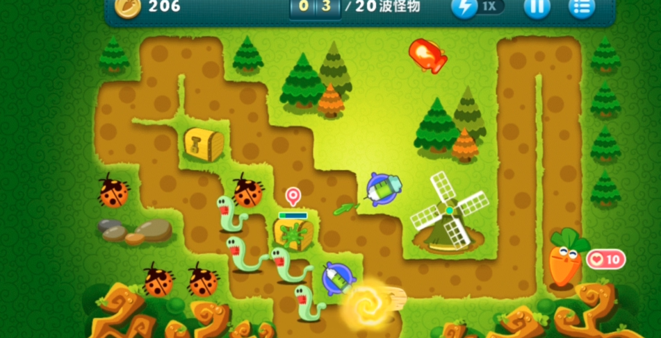 后期面对大BOSS时,记得把无法攻击到BOSS的炮塔全部卖掉,换成高爆发输出的火箭或魔法球。地图左右两侧要均衡布置火力,避免出现防御漏洞。最后一波怪物来袭前,建议暂停游戏仔细检查每个炮塔的覆盖范围,必要时在萝卜附近补1-2个冰冻星星争取输出时间。金萝卜成就的关键在于全程不让怪物碰到萝卜,所以控制比输出更重要。