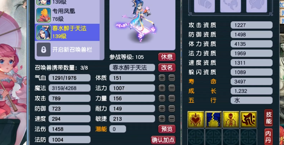宝宝方面建议准备两组,一组高魔心须弥法宠用来刷日常,一组蓝书高连攻宠专门抓鬼。须弥宝宝速度最好调到400比大部分怪快就行,内丹选灵身和灵光提升输出。攻宠不用太讲究,必杀夜战偷袭加高连套就能用,毕竟咱们主要靠人物输出。宝宝修尽量点到10级,法修优先点满,这样刷副本和活动会轻松很多。