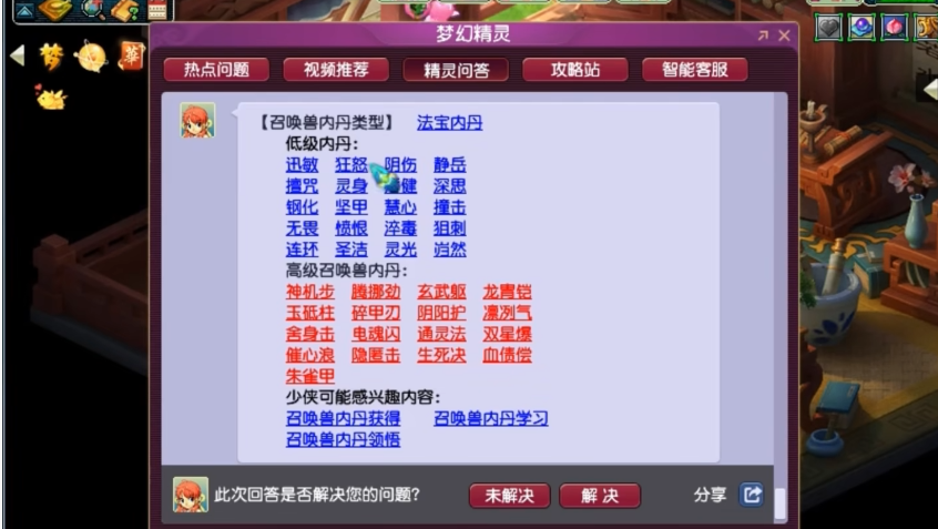 法宝宝的内丹选择就有点不一样了,高级内丹里催心浪是最受欢迎的,它能提高法术波动的下限,让输出更稳定。如果咱们的宝宝有高级法术波动技能,那这个内丹简直是绝配。低级内丹推荐灵光和灵身,前者根据魔力点提升法伤,后者增强法术暴击效果,都是法宝宝的核心选择。如果内丹格子够多,还可以考虑静岳来增加生存能力,毕竟活着才有输出嘛。