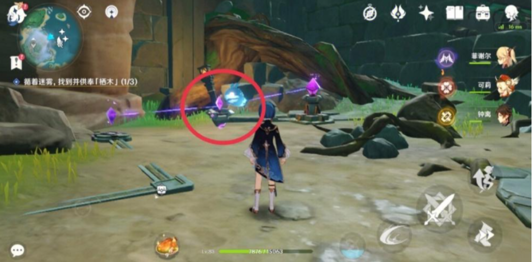 接下来咱们得先解决水位问题,因为部分羽毛藏在水下。这时候需要找到三个仙灵,让它们归位来降低水位。第一个仙灵通常在山洞门口附近,另外两个会跟着第一个仙灵移动,或者藏在岩石后面。找到并引导它们回到石柱上,水位就会下降,这样咱们就能进入地下的洞窟找羽毛了。