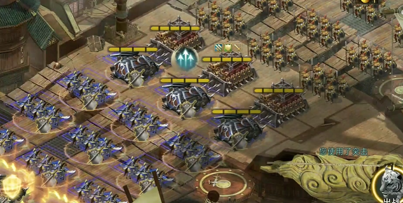 马超的作用是起手晕眩控制,建议带两车和红甲,阵法选择锋矢阵。马超需要封住第一个NPC的战法,如果能破掉最后一排车更好。如果马超能晕住第二个NPC的战法,会大幅降低后续压力。孟获带陆逊收尾,云垂阵堆到70级确保陆逊能放两次战法。孟获的装备不用太好,但至少保证一车改造,避免被火车喷太多导致提前阵亡。
