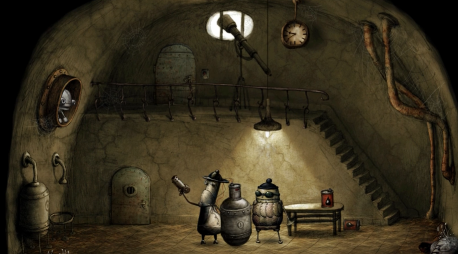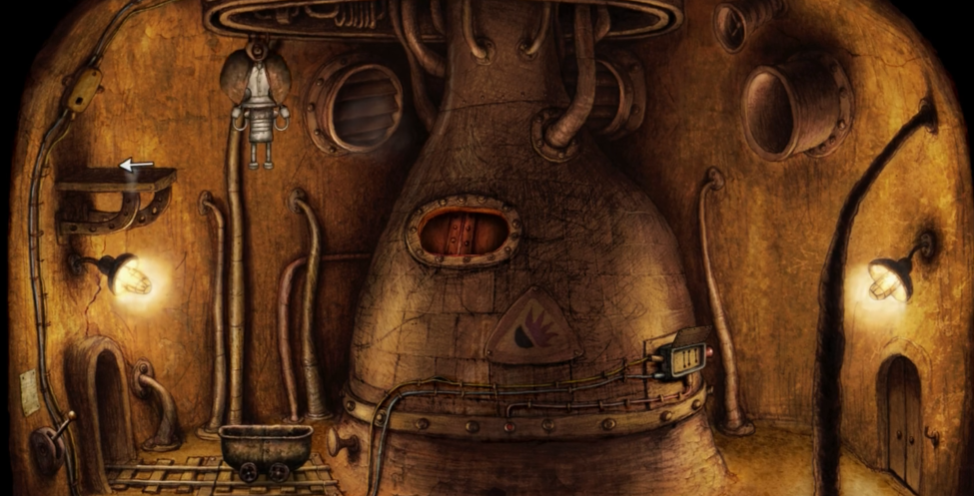 刚进入第四关时,你会看到一个胖子机器人偷吃煤炭后从窗口离开。这时候需要先到画面右下方锁着的门旁边拿到挂在墙上的钥匙,再到中间的锅炉处点击闪烁的小红灯,这样右边的开关就会打开。这个开关有三个档位,分别控制锅炉上方爪子的动作:向上拉是下抓,向下拉是转圈,放在中间则停止工作。把第一个开关拉到下方(转圈),第二个拉到最上方(下抓),第三个再拉到下方(转圈),设置好后按下红色按钮,爪子就会开始运作。