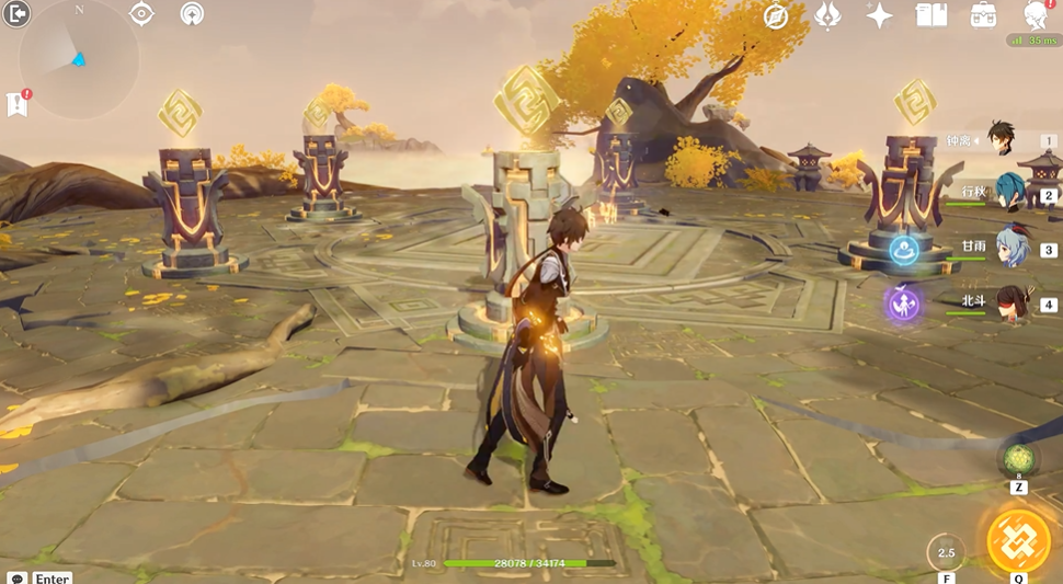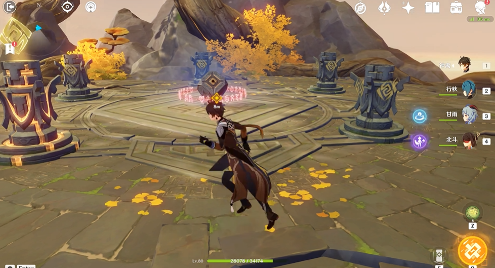 进入秘境后,玩家会看到五根岩柱,需按照特定顺序激活。常见的解法包括2-1-2-5或5-4-5-3等组合,具体操作为:先点亮相邻的两根柱子,再触发中间未亮的柱子。若操作失误导致全部熄灭,可重置后重新尝试。点亮后道路开启,需沿浮岛前进至下一区域。此处需再次用岩元素激活岩柱,触发限时战斗。