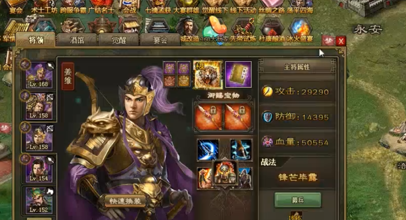 装备选择上,姜维觉醒套装需侧重防御与生命值加成。武器推荐龙胆、丈八蛇矛等提升攻击力,防具优先虎符、八卦阵增强防御,铁骑铠或龙鳞铠可平衡体力与防御。典韦套装或战神套装能进一步提升暴击与生存能力,但需根据战场地形灵活调整,例如国战防守时可选用小鸟真霸套。套装属性需与副将技能互补,避免属性重叠浪费。