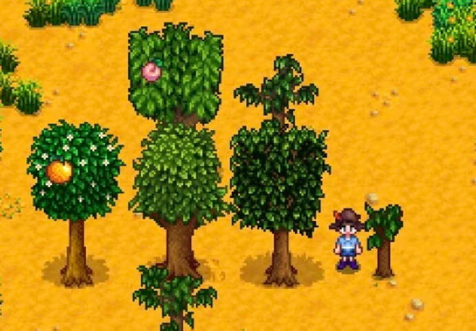 桃树的种植需要提前考虑空间布局和季节因素。由于桃树需要持续28天才能成熟,建议在春季初期就完成种植,以确保夏季能获得完整收获期。桃树一旦成熟就不需要浇水维护,这种低维护特性使其适合作为农场固定景观和稳定收入来源。需冬季桃树会停止结果,因此在季节更替时需要调整收获预期。