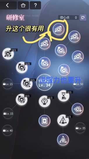 研修室升级的核心在于合理分配信心点数,优先提升攻击属性与减少思考时间的技能。前期建议主加说服力(攻击力)天赋,九级后可转向减少思考时间的天赋。升级顺序通常为说服力>思考时间>防御力,若队伍生存能力不足,可将防御力调整至第二位。