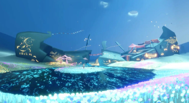 最重要的玩法是完成魔法季先祖的任务。先祖会要求你收集六种不同颜色的光芒,比如红色的念之灵、蓝色的水之灵等。这些光芒分布在全图各个角落,有的在霞谷溜冰场的水底,有的在云野的隐藏地图中。每找到一种光芒,就能解锁对应的奖励,比如动作、装饰或者爱心。完成任务后,方舟会逐渐恢复生机,沙漠中也会出现绿植和灯光,视觉效果非常治愈。
