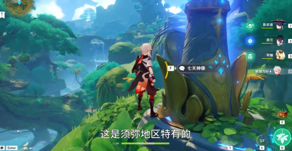 进入须弥后,你会发现这里的地形和之前的区域不太一样,到处都是茂密的森林和古老的遗迹。往前走一段路会碰到两个NPC,一个是学者,另一个是佣兵,和他们对话能了解到一些须弥的背景故事。继续往前探索,很快就能到达化城郭,这是须弥的第一个小村庄,可以在这里稍作休整,顺便开一下附近的传送点。