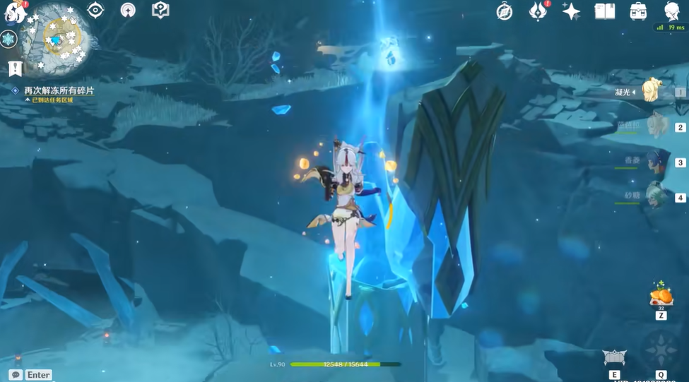 解冻三块碎片后,山顶的风墙会消失。从七天神像后的山洞出发,沿山路向上攀爬即可到达山顶。途中可能遇到少量敌人,但威胁不大。抵达山顶后,需要再次使用深赤之石攻击碎片完成最终解封。由于红石分布较散,建议使用弓箭角色提高效率。完成全部流程后,玩家可以解锁雪山山顶的圣遗物副本,并获得探索奖励。需未完成前置任务时尝试攀爬会被风墙阻挡,强行攀爬会在中途被强制传送回原地。