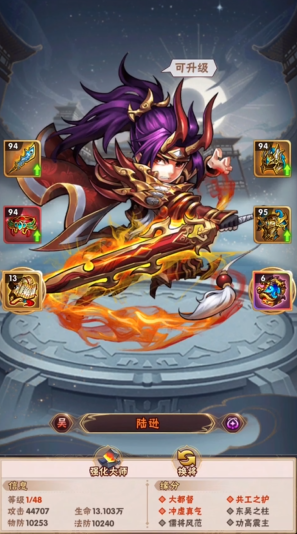 资源培养方面,优先提升吕蒙的星级和技能等级,尤其是白衣渡江的伤害效果。装备和宝物选择以法术攻击和暴击属性为主,确保他的输出最大化。如果资源有限,可以集中培养吕蒙和另一名核心输出,比如孙策或甘宁,形成双核驱动。吕蒙的优势在于残局收割,所以队伍中最好有其他武将负责前期压血线。