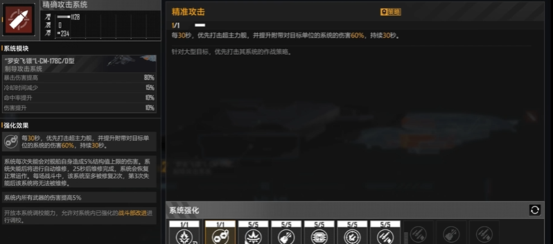 优先将技术值投入武器系统的关键模块。攻击间隔缩减15%为必点项目,直接影响火力投射频率;对飞机/护航艇命中率提升15%能显著提高对空作战效率;系统内火炮伤害增加10%提供稳定输出增益。策略技能若存在则需优先点满,这类全局增益往往能改变战斗节奏。武器目标选择时间减少30%的模块也值得投入,更快锁定意味着更早开火。