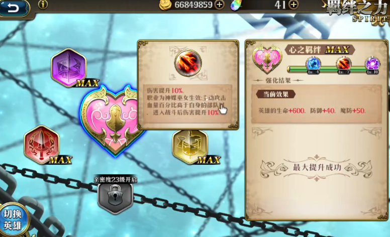 转职方面可以根据战斗需求选择神运圣女或巫师路线。神运圣女偏向辅助和生存,巫师则强化输出能力。她的羁绊系统需要解锁特定英雄,建议优先提升与阿莉娅的羁绊等级,这能显著增强姐妹俩的战斗力。每日记得完成她的命运之扉关卡,获取专属记忆碎片来突破星级。