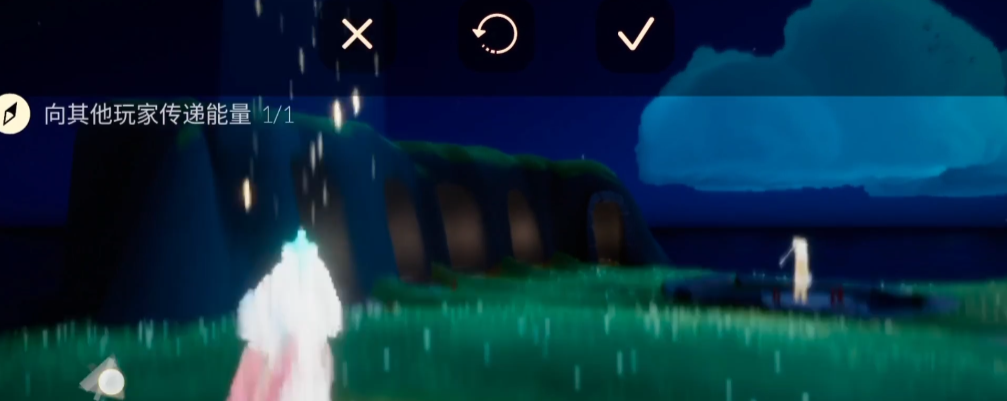 在光遇的世界里给其他小伙伴传递能量是日常任务之一,需要点击对方头上的蜡烛图标,就能把自己的能量分享给TA。只有当对方的能量不足时才能传输,如果能量是满的就没法帮忙啦。想要让对方能量不足,可以一起去雨林淋雨,直到心火熄灭,这时候就能顺利充能了。