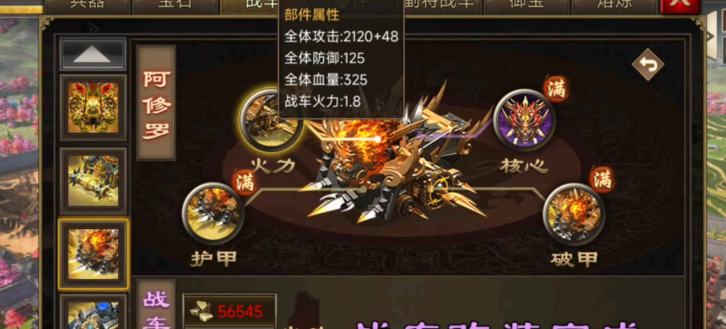 打造战车的过程分为几个阶段,首先是基础的霹雳车,接着升级为铁甲霹雳车,最后才能变成炽焰霹雳车。每一步都需要消耗陨铁,所以平时多攒点材料很重要。如果不想慢慢打造,也可以选择用金币快速完成,不过这样会花费不少资源。战车的属性会随着升级而提升,比如冲锋战车能增强武将第一排的战斗力,装甲战车则能提高耐久度,烈焰战车还能在普通攻击时喷射火焰,对付敌人更轻松。