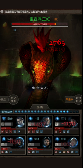 雷霆霸王红进入狂暴阶段后,攻击频率和伤害显著提升。应确保全队站位分散,避免群体承伤。坦克需要稳定仇恨,治疗则需预读群体治疗技能应对范围伤害。若队伍输出不足,可考虑携带奎老八等破甲角色,在BOSS释放完回血技能后的窗口期全力输出。战斗中务必随时补充药酒和解药,维持队伍状态。
