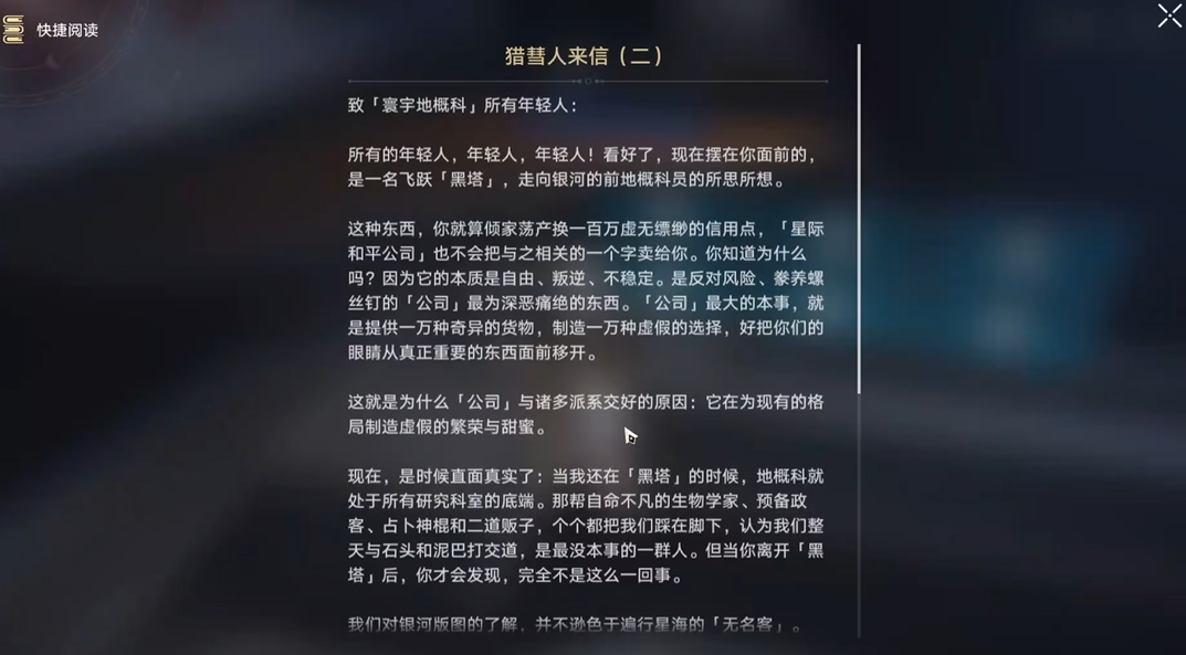 在主控舱段这个区域,书籍的分布相对集中一些,你可以在这里找到好几本,包括黑塔情诗系列和再见黑塔等,有些就在房间里的千纸鹤或者办公桌附近,转一圈基本都能发现。基座舱段那边则要注意那个需要任务解锁的密室,里面也放着书,所以如果你发现有个门进不去,很可能就是任务还没做到那儿。收容舱段分为一层和二层,这两层都有书籍可以拿,通常是在走廊边的柜子上或者一些设备旁边,支援舱段同样有书的点位,尤其是当你等级达到20级左右,会接到相关的任务,跟着任务走就能拿到不少。