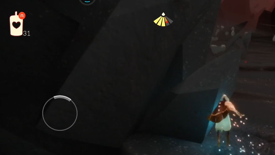 时刻留意自己右下角的能量条是保命的关键,没了可就动不了了。一旦发现能量掉到只剩三分之一左右,就别硬撑了,赶紧找地方落脚恢复一下。有些地方是由一连串小浮石挡着路,对付这种障碍,切换到滑翔模式慢慢过去会更稳。特别要注意最后那段,有个会旋转的大石轮,你得算好时机,等它转到大概九点钟方向时,抓准空档快速穿过去。带上像充能乐器或者烟花棒这样的道具有时候能救急,可以补充一点宝贵的能量。