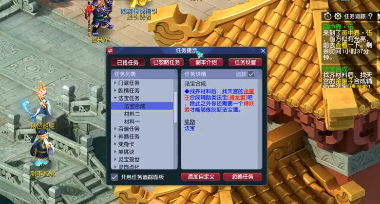 使用法宝任务书是获取指定法宝的快捷途径。法宝任务书可以直接让玩家领取想要的法宝任务无需等待随机触发节省了时间和精力。法宝任务书可以通过神器任务随机掉落或使用门派贡献兑换大约需要2000点贡献耗时较长。使用任务书后玩家进入法宝任务界面选择所需法宝并领取任务但任务本身仍需独立完成。这方法特别适合目标明确的玩家能快速获得稀有法宝如风袋或聚宝盆。但需注意法宝任务书只是用于领取任务并非直接获得法宝。