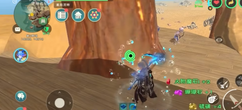 它能给你的装备加上各种元素属性,比如火烧得更旺、冰冻得更结实或者电得更麻。获得附魔石最基础的方法就是去开地图上那些有骷髅兵或者岩石怪物守着的黄金宝箱,这些宝箱散落在世界各个角落,像郁金香平原、永夜丘陵这些地方都有,你飞过去或者召唤宠物帮忙打架,把箱子打开就能随机拿到火、冰、电这些不同属性的一级附魔石了。