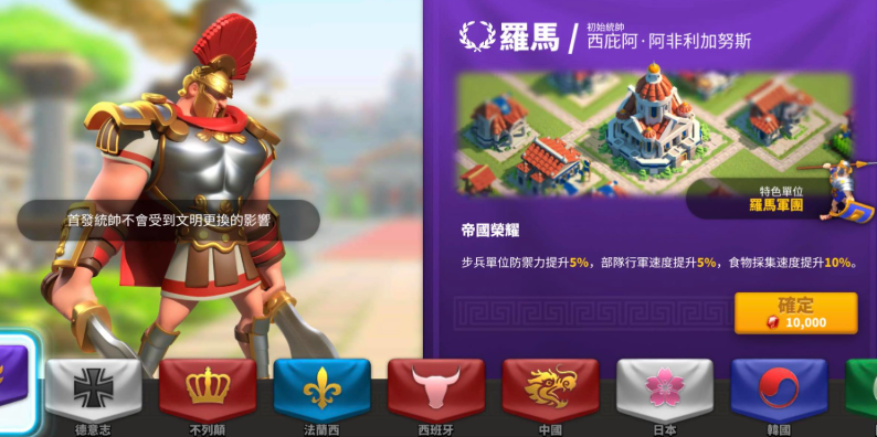 指挥官搭配和文明选择对步兵性能有显著影响,罗马文明对步兵有天然加成,可提升防御和行军速度,是指挥官搭配的核心考量。步兵系武将中,孙武等统帅的技能能增强步兵的攻防能力,天赋配置应优先点出步兵相关增益,例如生存强化或攻击加成,确保部队在实战中保持持久战斗力。