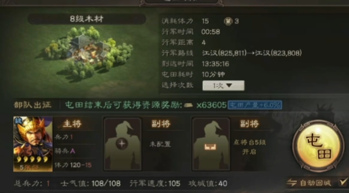 在囤积任务奖励的同时,你自身的发展也不能停下。你需要通过占领更高级的土地和屯田来积极积累资源,尤其是石料。开荒时打地一定要稳,尽量控制战损,因为每个士兵都消耗资源,战损过高会导致资源缺口,拖慢爆仓进度。初期可以多打三级地发育,兵力充足后再尝试四级地。策书要省着点用,建议留到能屯五级石料地的时候集中使用,这样效率最高。你需要通过各种方式,把自己的石料慢慢积累到接近6级仓库的上限,也就是接近16万。当你的势力值超过800,总资源产量每小时超过5000,且兵力维持在5000左右时,就说明你的整体发育状况已经为爆仓做好了准备。