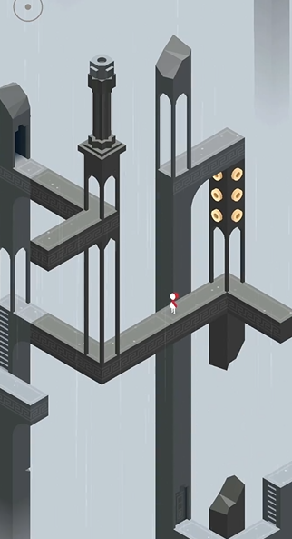 图腾的运用方式变得更加灵活。首先需利用图腾去触发场景左侧高处的按钮,这一操作往往需要通过旋转场景中的建筑模板或平台,为图腾搭建一条通往高处的道路。当图腾成功按下按钮后,台阶旁会出现一道拱门。遵循游戏惯例,进入拱门通常意味着场景切换,但此处的变化在于公主会暂时从画面中消失,而图腾的位置会发生重置。面对公主消失的情况,玩家需要将注意力集中在场景中央的四根柱子上。通过顺时针或逆时针旋转这些柱子,可以改变它们的高低层次和相对位置。此步骤的目标是精心调整布局,最终让图腾能够被移动并安置在最高的一根柱子上方。当图腾成功到达最高点后,它将能够触及并按下另一个关键按钮,这一举动会促使消失的公主重新回到场景之中。