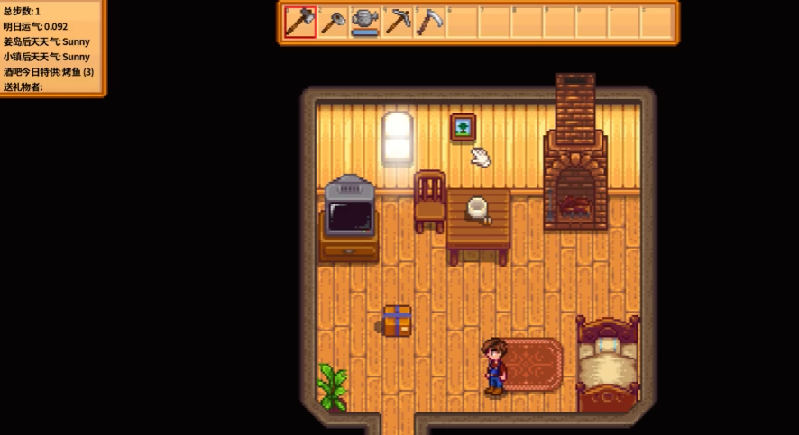 清晨起床,你第一件要做的事就是查看家里的电视机,看看今天的天气预报,了解一下运势,有时还能学到新的烹饪食谱,这决定了你一天的活动安排。你需要整理背包,确保带上一些可以补充体力的食物或物品,然后走出家门,开始新一天的农场生活。