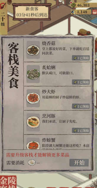 除了研究菜谱,空碟子也被直接用于客栈的升级过程。客栈的升级能够增加店内的桌子数量,这意味着你可以同时承接和处理更多的客人订单。更多的订单会带来更频繁的香料收获,从而形成一个获取空碟子的良性循环。你可以将获取的空碟子先用于研究新菜谱,待菜谱数量满足条件后升级客栈,升级后再继续研究新菜谱,如此循环推进。升级仓库容量也可能需要空碟子,这可以帮助你储存暂时用不到的香料,不过仓库升级并非进度必需,可以根据自身资源情况决定。