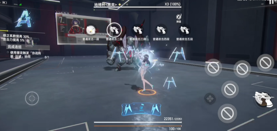 他的核心战斗机制围绕着独特的协战构装系统展开,这使得他的操作极富策略性。玩家通过长按普攻消耗能量可以召唤两种不同类型的浮游炮:普攻炮(构装·远诫)和技能炮(构装·明视)。普攻炮会协同你的普通攻击进行输出,而技能炮则会在你释放技能时发射额外光束。这两种构装的攻击命中敌人后,会积累加拉尔读数,当读数攒满时,便可释放强力的第三技能极态构装,进入火力全开的强化模式。根据召唤的两种构装的排列组合,进入极态后会获得三种不同效果,其中最常用的是一普攻炮+一技能炮组合,此时浮游炮会自动攻击并附加破甲效果,完美契合其辅助定位。