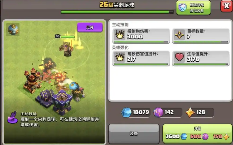 尖刺足球是一种史诗级英雄装备,能够在部署后显著提升英雄的移动速度和攻击力,使其在战斗中发挥关键作用。这种装备适用于多种战斗场景,通过合理搭配可以最大化英雄的效能。玩家需要了解其基本特性,才能有效运用在攻防策略中。