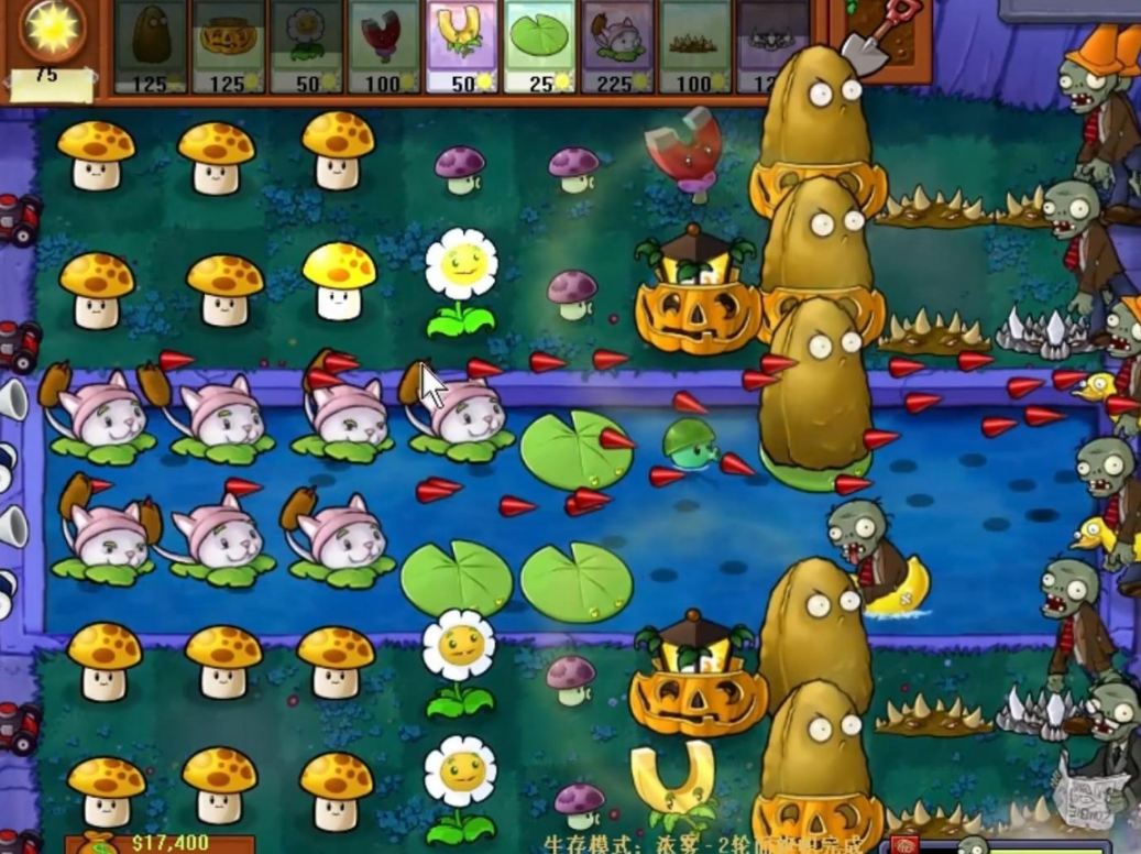 由于雾气阻挡阳光收集,建议前期多种植阳光菇或向日葵,快速建立经济优势。阳光菇在夜晚关卡效率更高,可以优先考虑。经济稳定后逐步将阳光菇升级为双子向日葵。水路要种植荷叶作为基础,水上向日葵建议种植两排,确保阳光供应充足。及时补充阳光生产植物是关键,避免因经济不足导致防线崩溃。