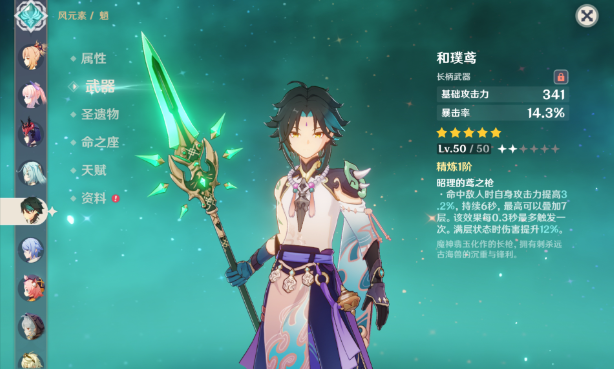 魈是和璞鸢的专属适配角色,两者相性极高。魈的输出模式以下落攻击为主,能快速叠满武器被动,暴击率词条缓解圣遗物压力。元素爆发的高额伤害加成与和璞鸢的增伤效果形成互补,即使满命后以元素战技为主,和璞鸢仍是优先级最高的选择。其他长柄武器如护摩之杖或四星决斗枪,在特定场景下可能略逊一筹。