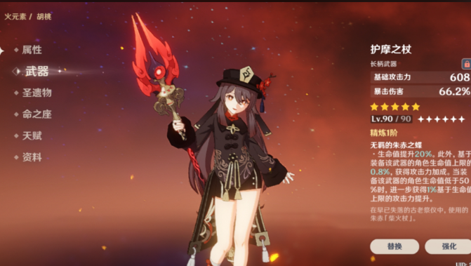 胡桃在缺乏专武时可选用和璞鸢作为下位替代。虽然胡桃对攻击力加成利用率较低,但暴击率词条能优化输出稳定性,满层被动的增伤效果可弥补部分差距。需注意胡桃主要依赖生命值转化攻击,和璞鸢的白值优势无法完全发挥。相比之下,护摩之杖或匣里灭辰在元素反应队中表现更突出,但和璞鸢仍可作为过渡选择。