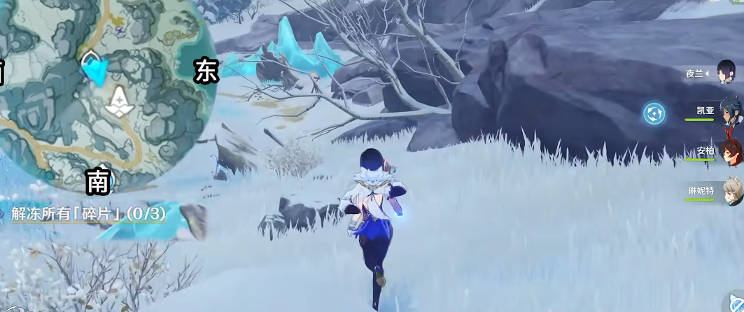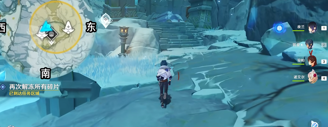 解开雪山山顶的封印,咱们得先完成前置任务山中之物。这个任务是登顶的关键,没做完的话,爬到一半就会被传送回去。任务要求咱们解冻三块被封印的碎片,它们分别分布在覆雪之路、眠龙谷和星荧洞窟。每块碎片都需要用深赤之石的力量才能破除坚冰,所以记得带上火系角色,比如安柏或者香菱。