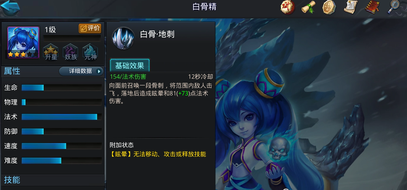 白骨精在游戏中是一位拥有强大群体输出和瞬间爆发能力的法师英雄,她的技能组合非常依赖法术强度,在技能冷却期输出能力会大幅下降。这位英雄生存能力较弱,容易被近战突进型英雄秒杀,因此更适合走中路位置。她的核心技能回旋可以朝前方丢出骷髅回旋镖,对路径上的敌人造成来回两段伤害,但每个单位最多受到两次攻击。