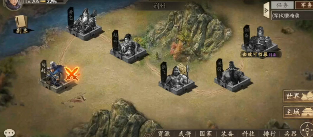 确保所有参战武将的兵种科技达到4级,优先提升骑兵和枪兵的对抗能力。若初次尝试失败,可调整装备分配或尝试不同的武将组合,例如用夏侯渊替代庞德以提高山地适应性。马超副本的难度较高,需多次尝试并优化战术,逐步掌握敌方行动规律后再发起总攻。