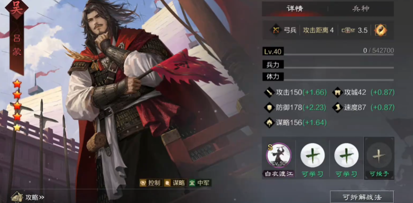 武将培养分为等级提升、技能强化、装备搭配三个维度。等级提升最快捷的方式是采用无损刷级法:将低级武将置于大营仅带100兵力,依靠中军和前锋击杀敌人获取经验。技能强化需消耗同名武将或技能点,优先升级核心战法如吕蒙的白衣渡江、刘备的皇裔流离等。装备系统需根据兵种特性选择,弓兵侧重木材消耗的装备,骑兵优先铁质装备,步兵则需粮草类装备支持。