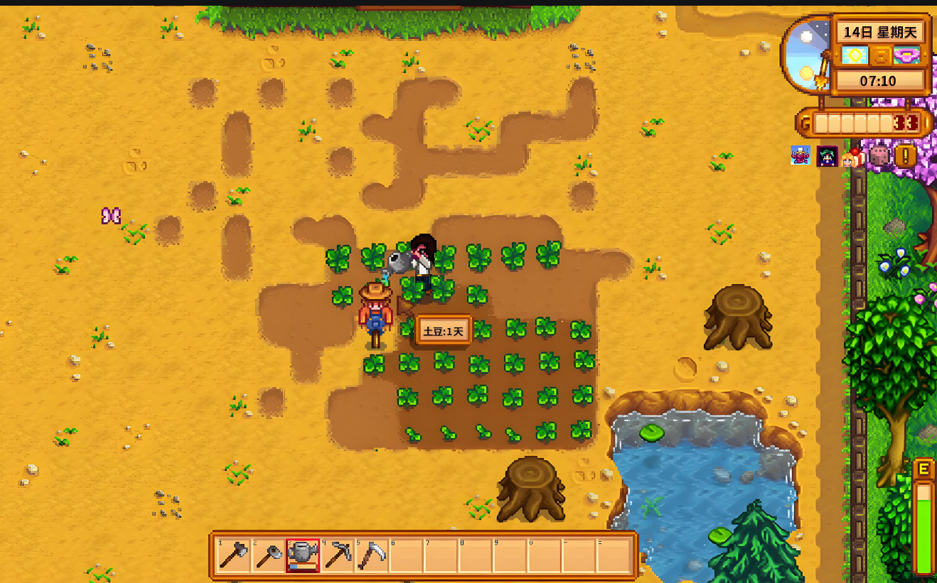 土豆和甘蓝因其生长周期短的特点,成为春季补充种植的理想选择。土豆具有较高概率产出双倍作物的特性,单位面积收益稳定;甘蓝则凭借快速的成熟周期和可观的腌制价值,适合进行多轮次种植。这两种作物对肥料响应良好,配合质量提升剂使用可显著提高高品质作物的产出比例,为春季中后期的农场运营提供持续现金流。